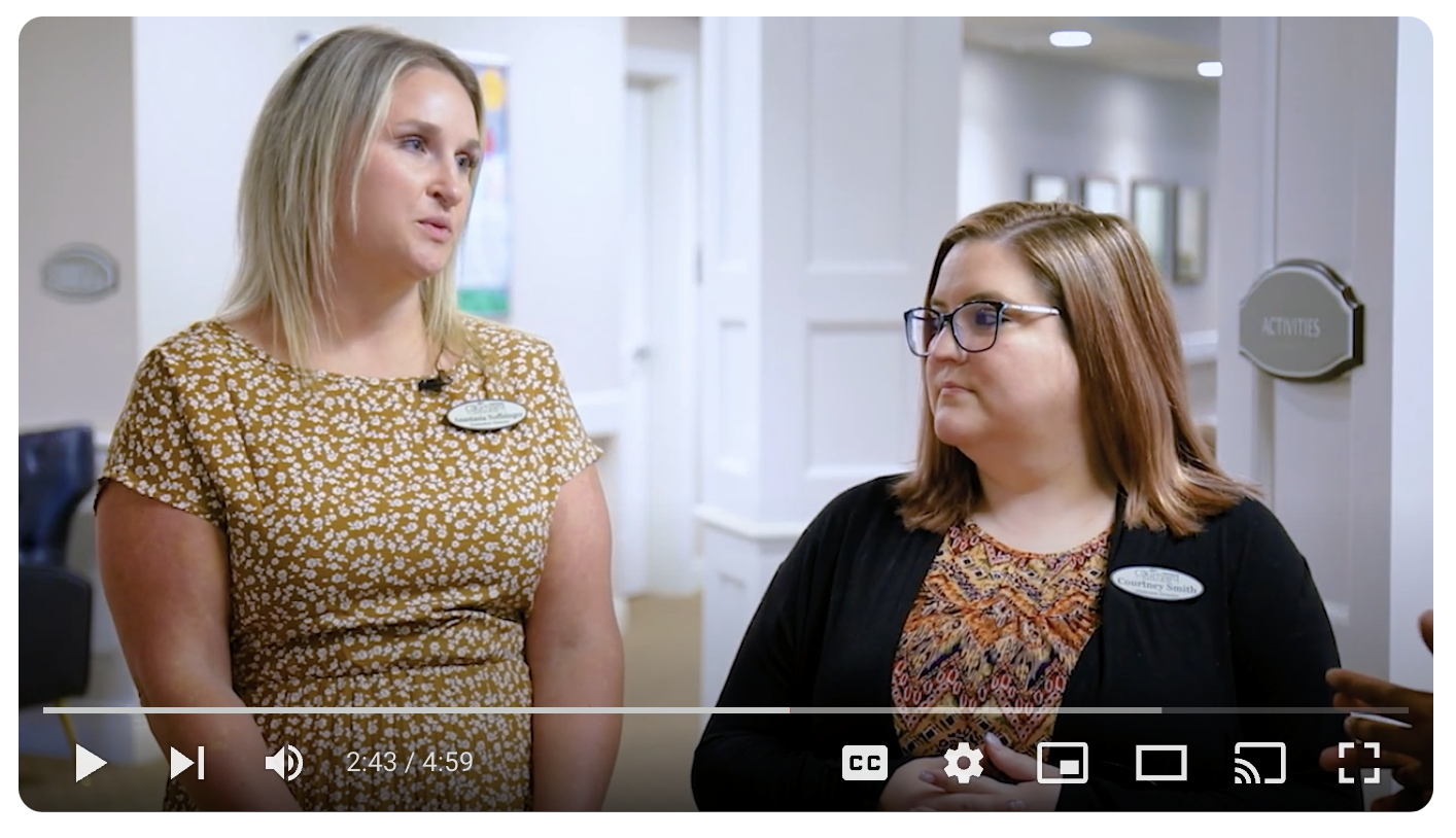 “We’ve had an amazing experience with my mom’s first month at The Courtyard at Centerville. The best way to describe the people, admissions process, and overall environment is bright, cheery, and caring! They made everything seamless, uncomplicated, and pleasant. Smiles galore!“ ~ Shannon